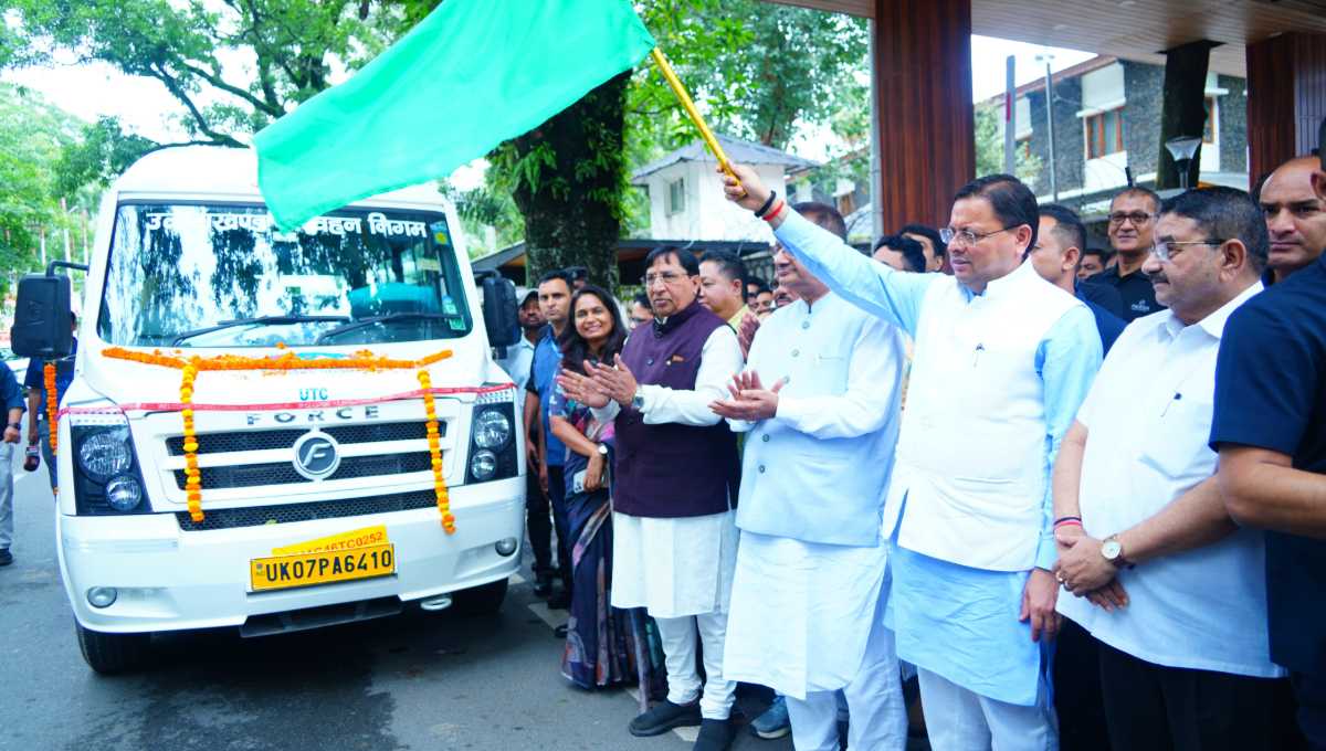 मुख्यमंत्री धामी ने उत्तराखण्ड परिवहन निगम द्वारा संचालित की जा रही 20 नई वातानुकूलित यूटीसी मिनी (टैम्पो ट्रेवलर) का फ्लैग ऑफ किया